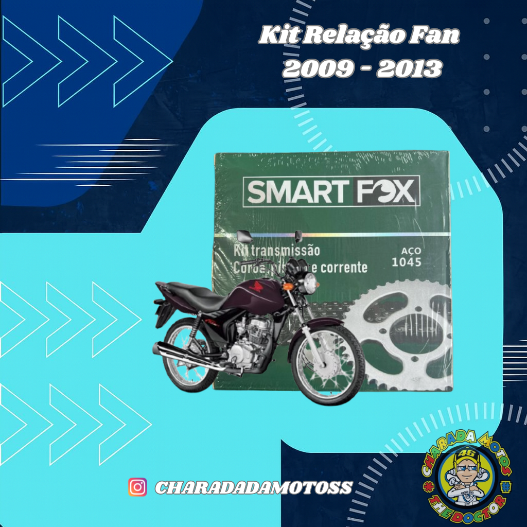 O kit contém uma coroa, um pinhão e uma corrente de transmissão, todos projetados para uso na Honda Fan 2009-2013.